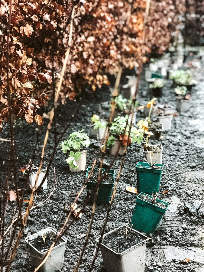 Wir haben im November zunächst die Flächen vorbereitet und mit guter Erde aufgefüllt, dann wurden die Leitstauden (oder Rosen) rhythmisch, aber in ungleichen Abständen über die gesamten Flächen verteilt. Anschließend stellten wir die Gruppen der Begleitpflanzen daneben, und zum Schluss füllte ich die noch leeren Flächen mit den Füllstauden. Ganz zum Schluss verteilte ich noch einzelne Einstreuer in Lücken. Erst wenn alles steht, wird gepflanzt!