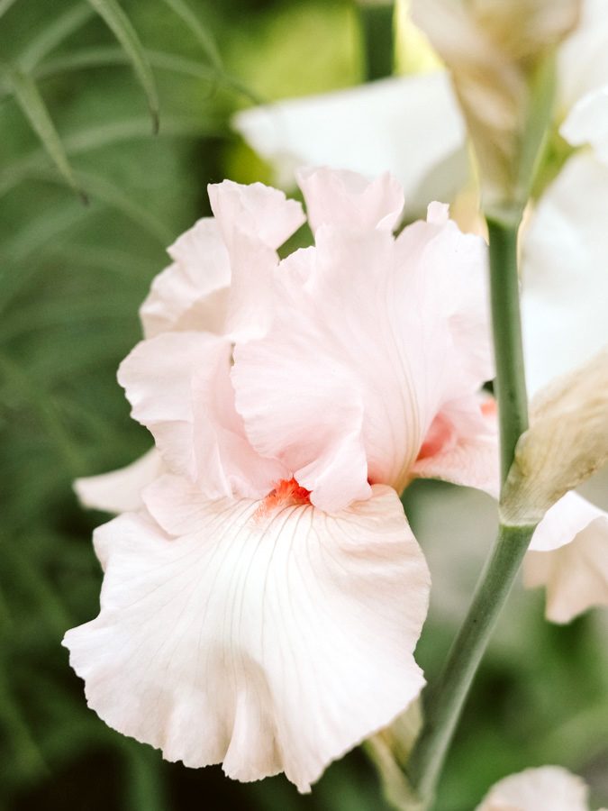 Grundsätzlich überlege ich mir am Anfang immer eine Mischung aus opulenten Pflanzen (Leitstauden, Rosen, Dahlien, kleine Gehölze o.ä.), um mir dann interessante Kombinationen mit leichten, wildstaudenähnlichen Pflanzen auszudenken, die in einem spannenden Kontrast zu ihnen stehen. Ich liebe hohe Bart-Iris mit Wiesenkerbel, Rosen und Baldrian, Dahlien und Kosmeen, Herbstanemonen und Hortensien.