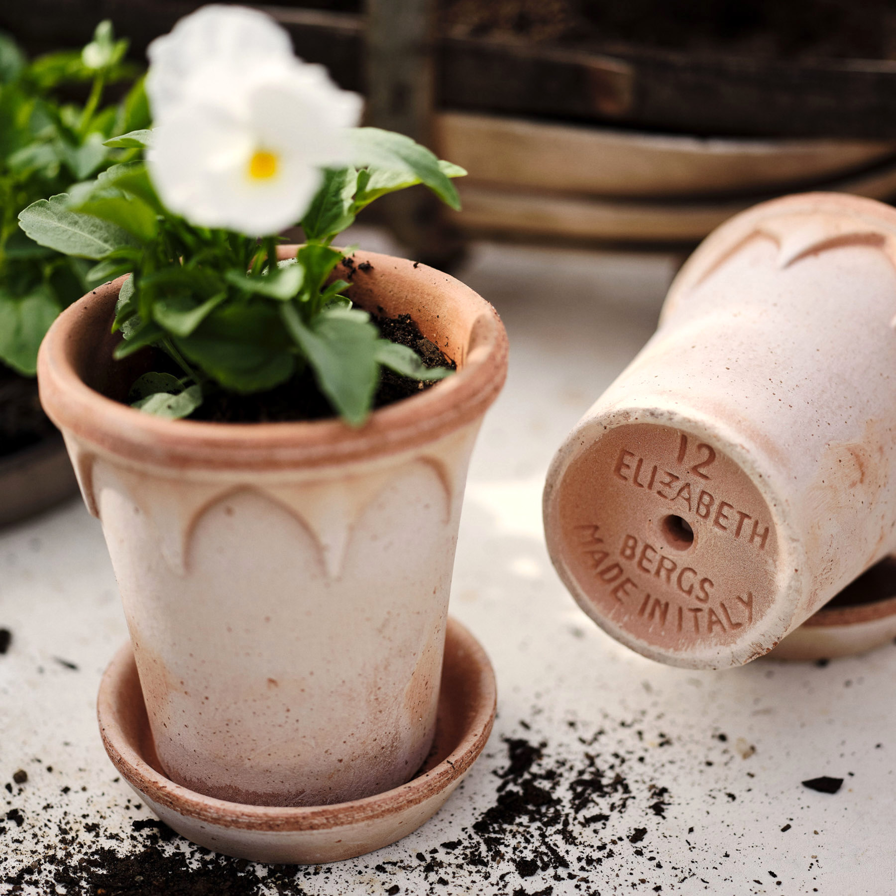 Elisabeth: Eine Königin von Anmut und Ruhm! Trotz aller Widrigkeiten saß diese Königin mehr als ein halbes Jahrhundert auf dem Thron. Wie die Königin ist auch dieser Tontopf langlebig und von Eleganz geprägt. Gotische Bögen schmücken die Seiten und bilden eine Krone, wenn der Topf auf den Kopf gestellt wird. Der Tontopf Elizabeth ist eine Hommage an alle Frauen, an alltägliche Königinnen, die allen Widrigkeiten mit Stolz, Anmut und Stärke trotzen.