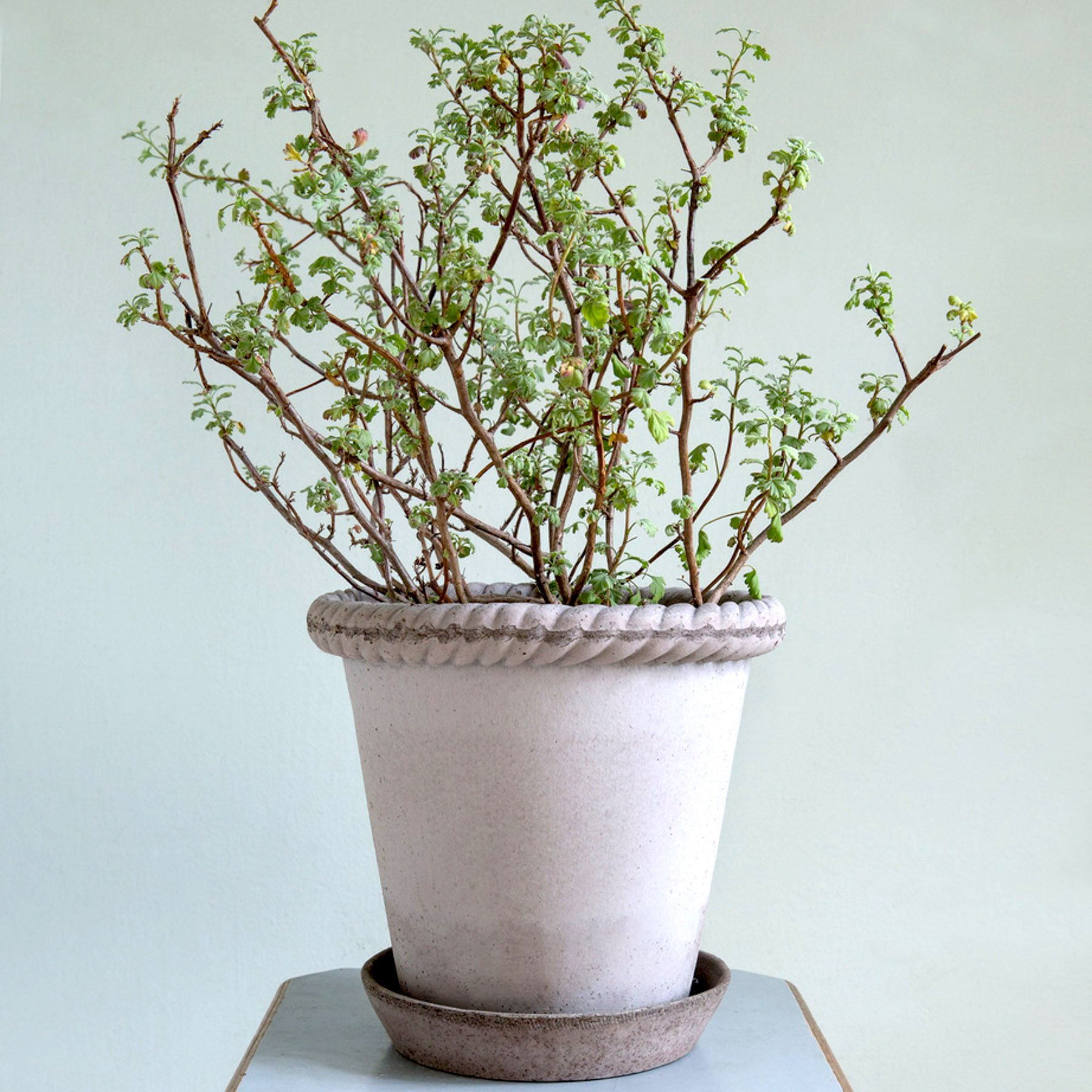 Das Römische Reich war die Inspiration für den Emilia-Tontopf mit dem charakteristischen Seil, das sanft auf dem oberen Rand dieses hohen, schlanken Topfes ruht. Seit den 1800er Jahren ist die italienische Stadt Modena in der Region Emilia-Romagna für die Herstellung dieser Art von Verzierungsseilen für verschiedene dekorative Zwecke bekannt.