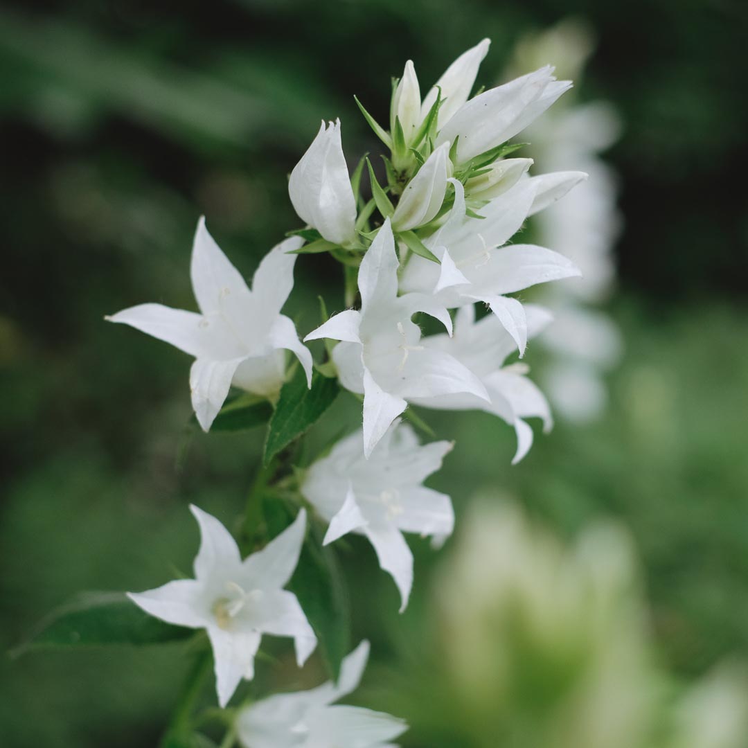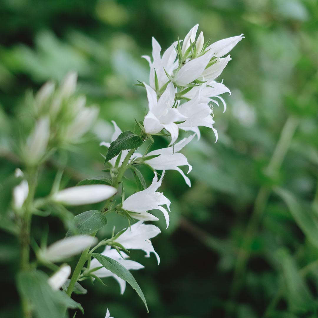 Very elegant and yet absolutely robust, the white selection of the native forest bellflower brightens up dark garden areas with its brilliant white flowers. Goes wonderfully with foxgloves and columbines and also tolerates the root pressure of tall trees.