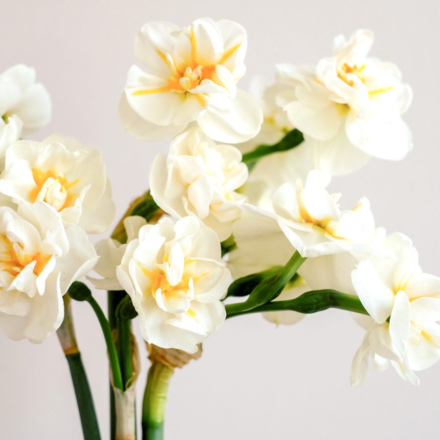 Daffodil ‘Sir Winston Churchill’ consists of white petals with a small orange-yellow center. It is weather resistant and has a wonderful, distinct fragrance. It is also excellent for containers. Rabbit and deer resistant variety.