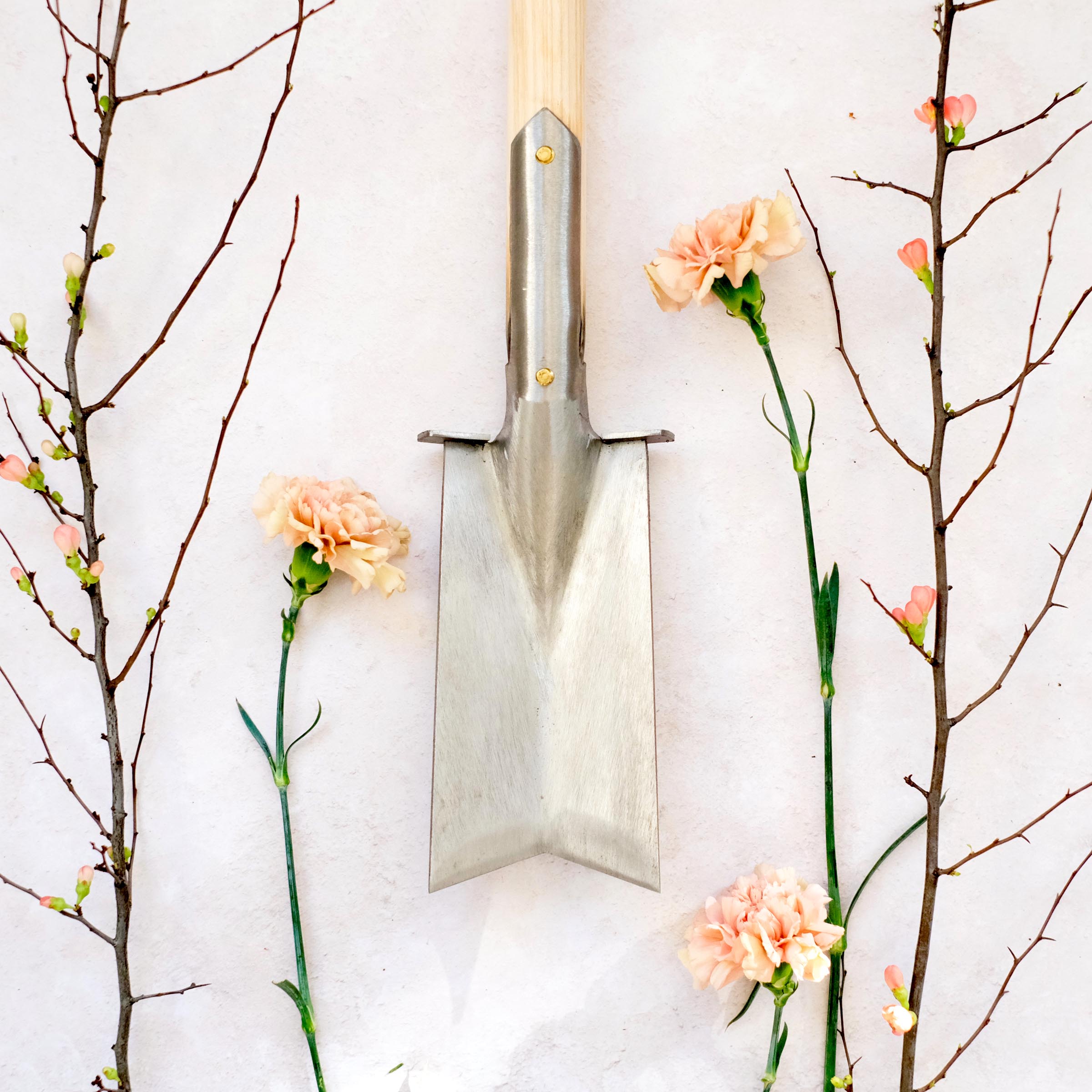 My favourite spade! The special thing about it: it is very narrow and its martial-looking blade penetrates effortlessly into any soil. This transplanting spade can also be used to remove (thick) roots or precisely divide perennials. Ideal for working in existing plantings, as it is incredibly accurate to work with. With solid ash wood handle and a durable stainless steel blade.