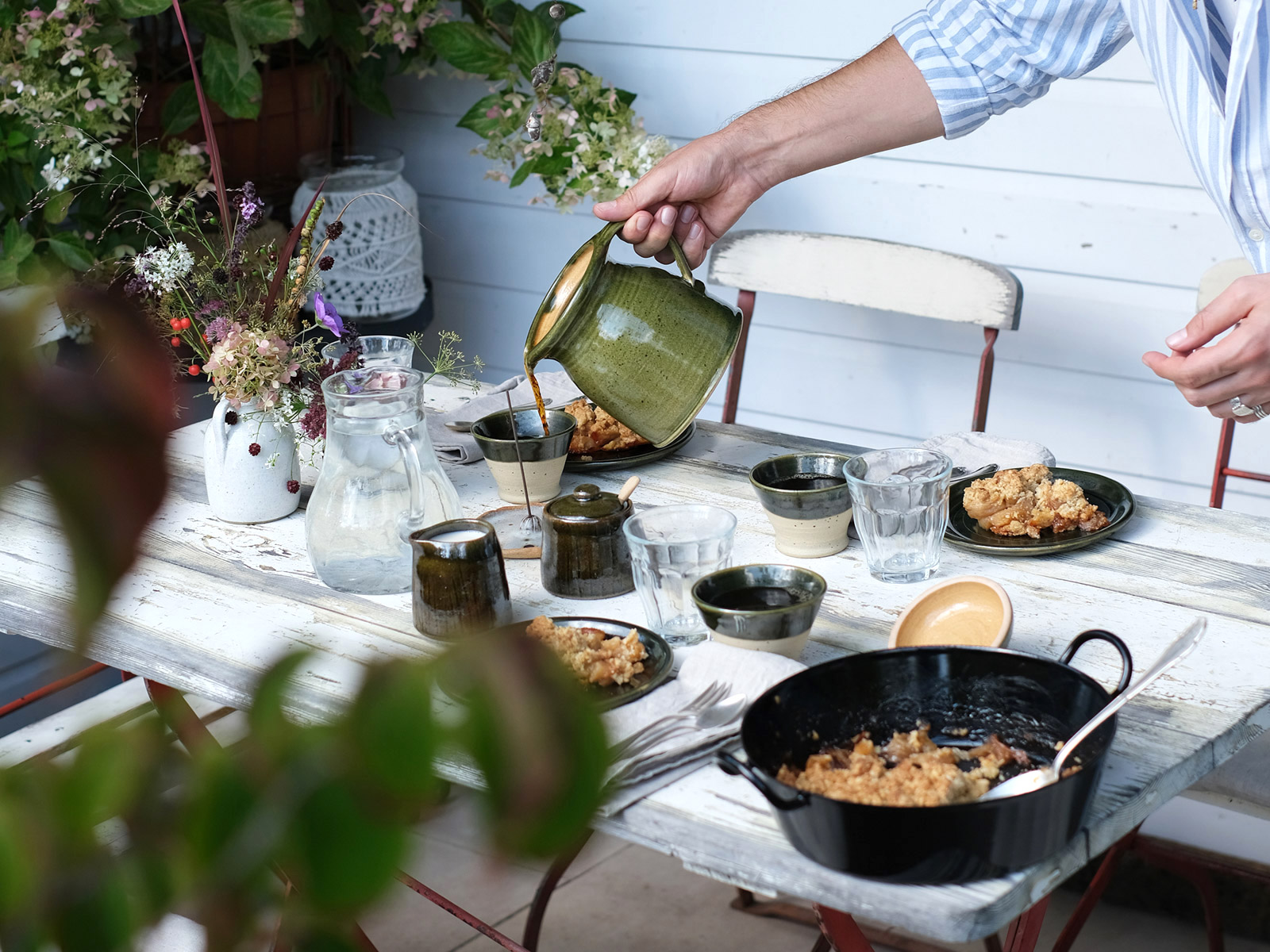 3. Lieblingsgegenstände! Begeht nicht den Fehler, nur aussortiertes Geschirr mit in den Garten zu nehmen, sondern wählt ganz bewusst Lieblingstassen für diesen Ort, der bald für euch wie ein zweites Zuhause sein wird. Wir haben unsere selbst getöpferten Schälchen mit in den Garten genommen sowie Keramik, die wir auf Reisen gefunden haben.
