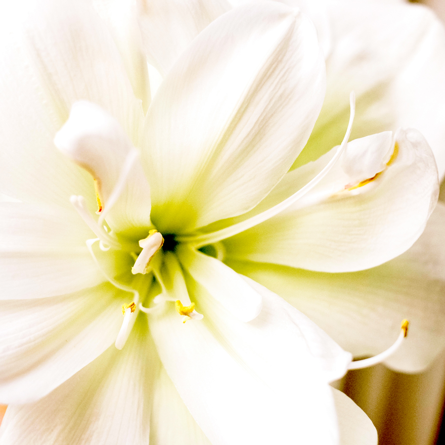 Die Amaryllis ‚Marilyn‘ beeindruckt mit große, vollständig gefüllte schneeweiße Blüten, die an der Basis der Blütenblätter mit einem leichten Hauch von Limettengrün verziert sind. Sie wirkt anmutig, elegant und bringt zugleich eine betörende Frische in den Raum.