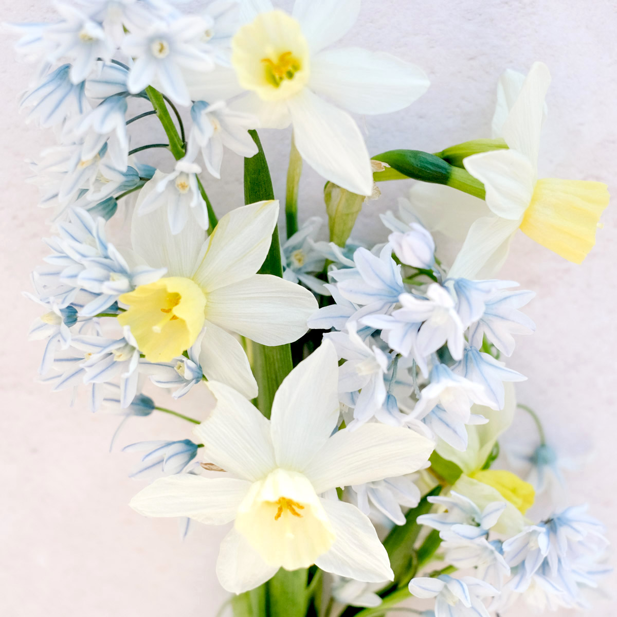 Enthaltene Sorten: 10x Narcissus ‚Sailboat‘ • 20x Puschkinia scilloides var. libanotica in der Geschenkbox