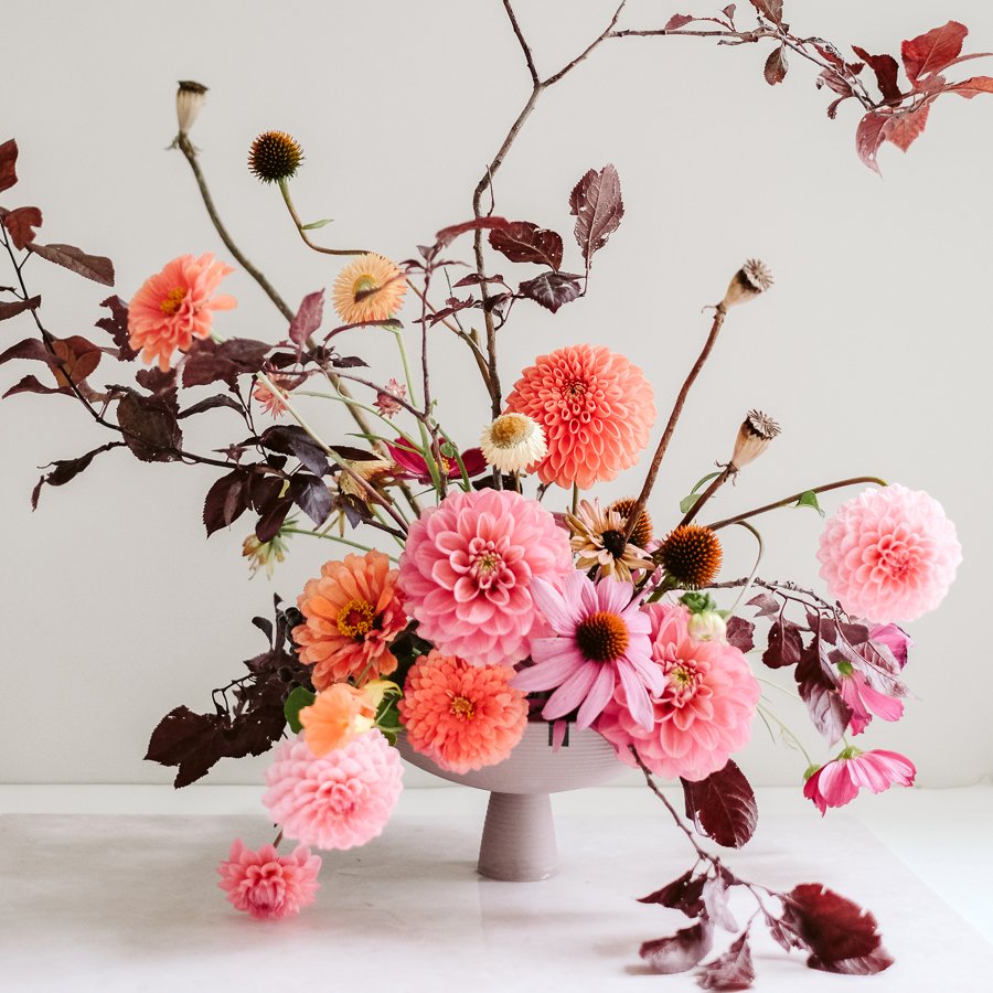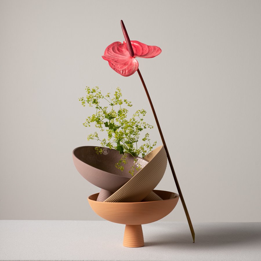 Die geschwungene Silhouette und die subtilen Farben der Dais Schale verleihen ihr eine poetische Wirkung. In ihr lassen sich, mit ein wenig Geschick, filigrane Blumenarrangements kreieren. Ebenso ist sie für Ikebana geeignet, am besten in Kombination mit unseren Flower Frogs. Schon ein einzelner Zweig wird darin zum Kunstwerk.
