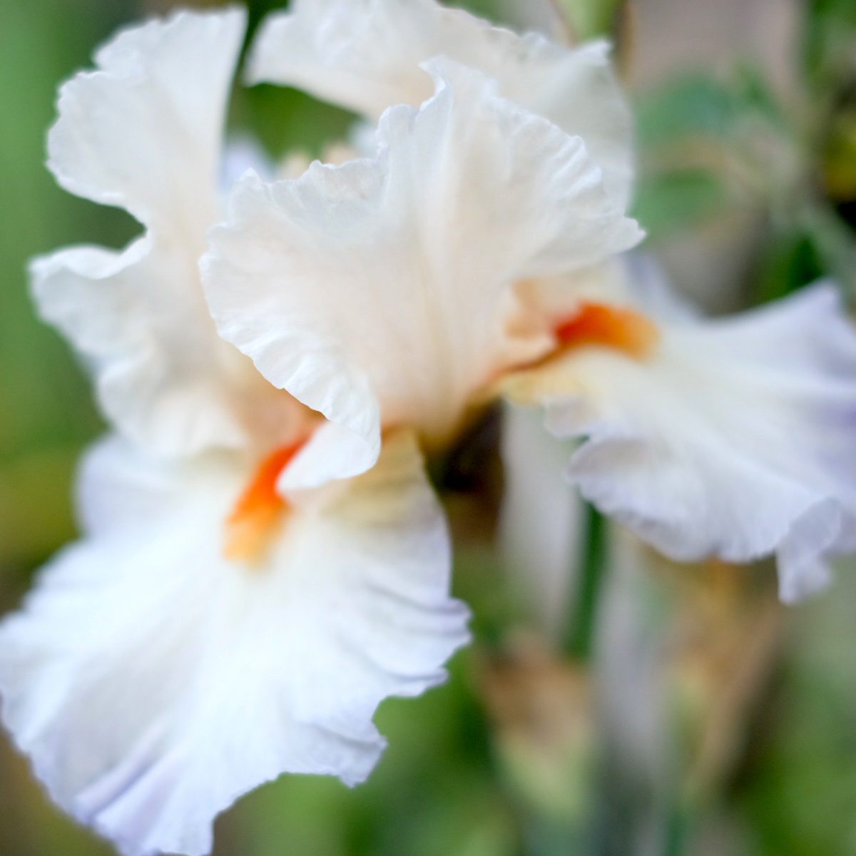 Eine zweifarbige Schönheit in zartestem Roséweiß und hellblau umrandeten Blütenblättern mit korallfarbener Mitte. Die Blumenränder sind graziös gewellt. Ihre üppigen, großen Blüten versprühen einen nostalgischen, frischen Charme. Sie ist gut verzweigt und robust im Wachstum.
