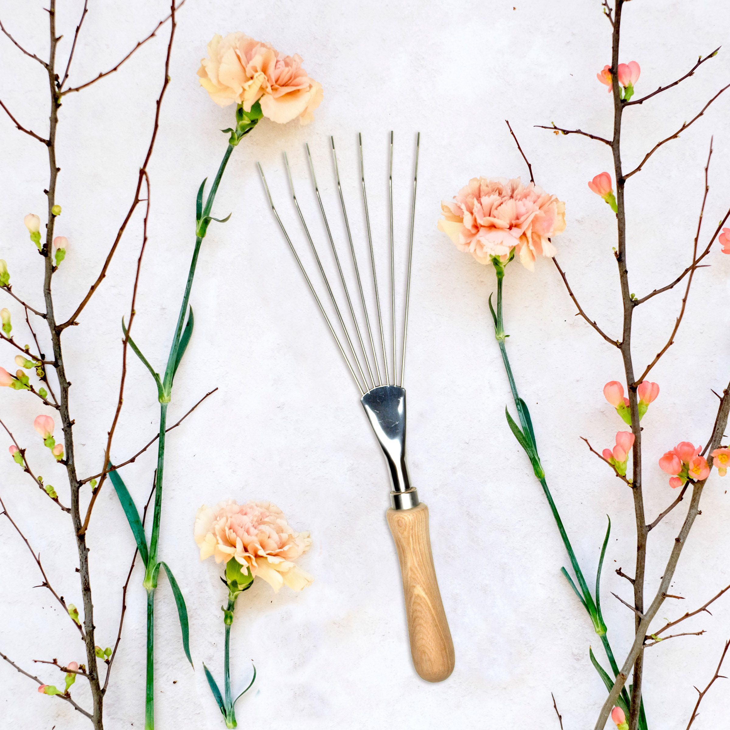 Dieser handliche Laubrechen ist mein Lieblingswerkzeug, besonders im Frühjahr. Damit entferne ich das Laub auf den Beeten ohne die Spitzen der Zwiebelpflanzen, die schon aus der Erde schauen, zu beschädigen. Gleichzeitig wird der Boden gelüftet. Auch nach dem Auszupfen des Unkrauts kann dieses schnell und sauber mit dem Laubrechen aus dem Beet geholt werden.