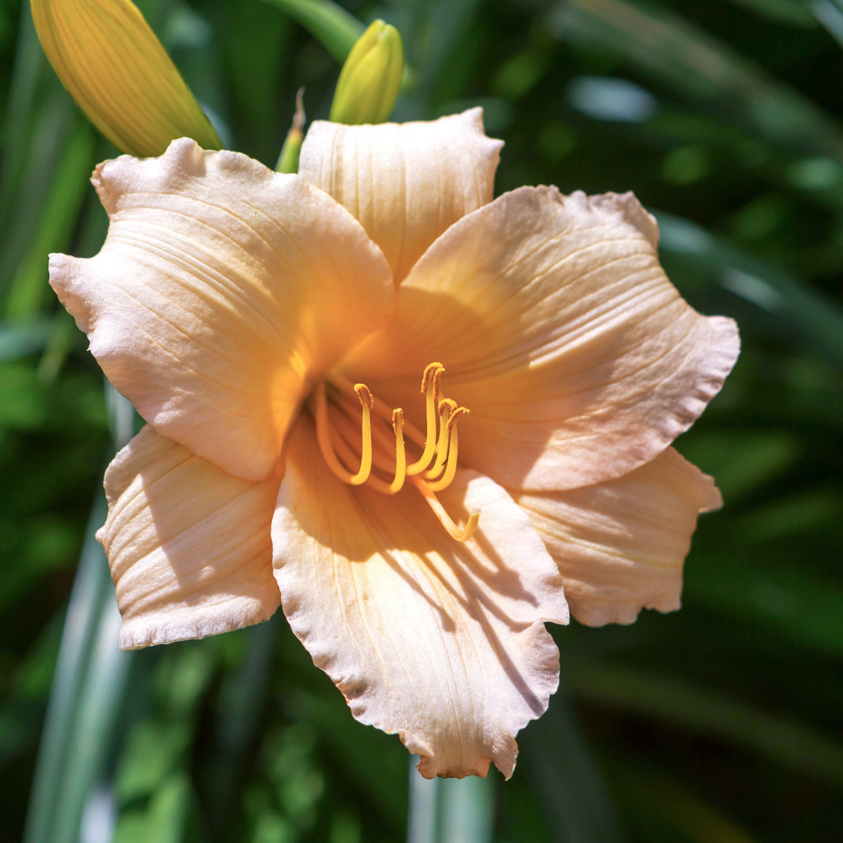‚Louise Manelis‘ ist eine wunderschöne, apricotfarbene Taglilie, die sich durch Ihre Anspruchslosigkeit auszeichnet. Ihre Blüten verzaubern, mit geringstem Aufwand, jeden Sommergarten. Sie eignet sich zudem hervorragend als Schnittblume. Ihre essbaren Blüten sind ein weiteres besonderes Merkmal.