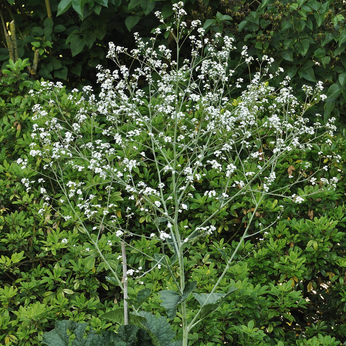 Diese prachtvolle Staude macht sich ausgezeichnet in Riesenbouquets oder als Füllpflanze im Garten. Die weißen Blüten versprühen einen Duft von Honig, während das Riesen-Schleierkraut durch seine feierliche Größe imponiert. Ein beeindruckender Solitär mit großen verzweigten Blütentrauben und rundlich-herzförmigen Blättern, der besonders gerne in englischen Cottage Gärten zur Auflockerung eingesetzt wird.