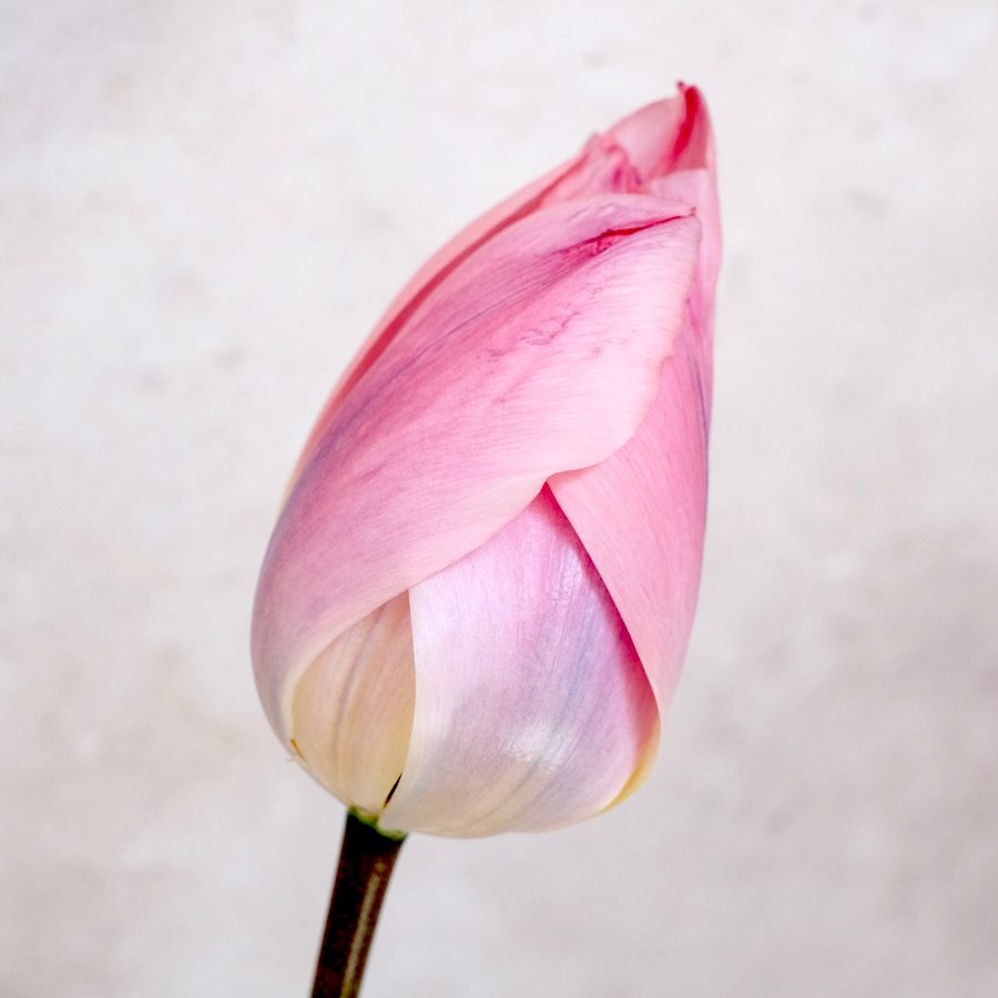 Eine ausgesprochene elegante Sorte in ungewöhnlichen Farben. Das pastellfarbene, bläulich- leuchtende Rosa steht in Kontrast mit dem schönen dunklen Stiel. Sehr große Blüten und wunderschön in Kombination zu helleren Sorten.